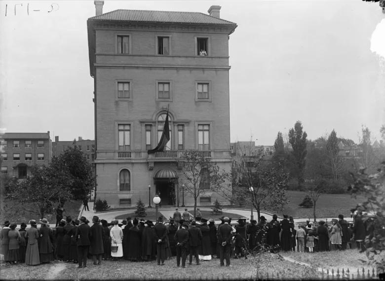The United States and Mexico established diplomatic ties in 1822 after the US recognized Mexican independence. The State Department calls the relationship since then “intimate and often contentious.” When the MacVeaghs moved into the house in 1911, a revolution raged in Mexico. In 1914, while Emily was battling a terminal illness, Mexico severed diplomatic ties after the Tampico Incident. Ties were restored in 1917 as a heartbroken Franklin couldn’t bear to be in the home without his late wife and moved back to Chicago, lending the home first to Lord Balfour when he lead the British mission; and later to King Albert and Queen Elizabeth of Belgium when they visited the US in 1919.